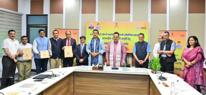 Jaipur, April 19. In the august presence of Chief Minister Shri Bhajan Lal Sharma, 18 tripartite agreements (MoUs) were signed between HPCL Refinery, the Department of Industry and Commerce, and industries at the Chief Minister's residence on Sunday to ensure the supply of downstream products to industrial units in the Rajasthan Petro Zone in Balotra.